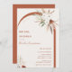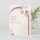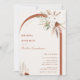 Bohemian Floral Arch Bridal Shower Invitation. Boho style watercolor flowers, pampas grass and delicate green foliage frame on beige and terracotta orange backgrounds.