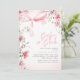 A charming pink bow or coquette adds a touch of sweetness and elegance, surrounding floral background give your invite a fresh feel