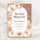Boho bridal shower invitation in trendy earthy mocha colour. Beautiful elegant modern design with hand painted botanical accents. Features delicate watercolor roses, peonies, pampas grass and retro typography font. You can choose printed invitations and/or instant download digital template. Personalize with your own details. Perfect for a stylish boho bridal shower celebration.