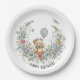 Boho floral birthday bear paper plate