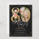 Boho Floral Black Gold Photo 80th Birthday Party Invitation