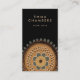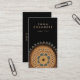 Modern whimsical boho floral business cards with earthy brown and yellow gold stylized floral element. Add your contact information and social media to the back of the card, on a contrasting black background that makes the earthy colours pop.