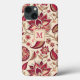Boho Floral Deep Berry Pink on Cream Monogram iPhone 13 Case. Personalize the phone case with your monogram or initial.