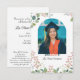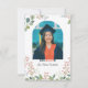 Colorful boho floral design surrounds your photo on this beautiful college graduation celebration card. The graduate "text" below the photo is actually a transparent graphic that allows that portion of the photo to show through. The smaller size card gives you the option of mailing it separately with envelopes to desired guests -- or enclosing it, instead, with the appropriate announcement cards. The photo and all text are easily changed with the template. Selecting “Personalize this design” offers you several edit options to easily change the text (wording, plus type font, color, size, position) and to edit the design elements, if you desire. If you have created an online website, the QR code can be very helpful for guests. NOTE: You can create a website by searching online for "free graduation website" which should give you several sites that offer such a service.