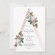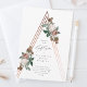 A feminine baptism invitation featuring beautiful vintage botanicals atop a rose gold structural triangle shape.