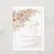 Elegant Boho themed 30th birthday invitation featuring a floral arrangement with pampas grass, fern leaves and roses in natural tones. The calligraphy heading is an image that can be removed. The color on the back of the invitation can be altered.