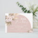 This bohemian birthday invitation can be used for any age and features two bohemian floral arrangements with pampas grass, palm leaves and roses in various shades. The background is white and a blush wide arch. This boho 30th birthday invitation is ideal for anyone who like modern bohemian invitation designs.