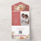 Embrace romance with this coral and peach floral all-in-one wedding invitation. Featuring soft, elegant blooms, a QR code for RSVP, and a customizable photo area, it’s perfect for rustic, garden, or boho weddings. Eco-friendly design with no envelope needed.