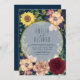 Boho Floral Pink and Navy Blue Wedding Invitation