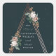 A romantic wedding sticker featuring beautiful vintage botanicals atop a rose gold structural pyramid on a textural background.