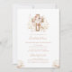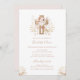 This sweet baptism or christening invitation features a a lovely bohemian floral arrangement on the top and behind a faux wooden cross. This girl's floral bohemian baptism invitation also features some pale blush dots and small floral arrangement at the base of the invitation.