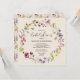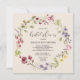 This botanical bridal shower invitation features a boho floral wreath of watercolor wildflowers on a cream background. The words "bridal shower" appear in elegant handwriting script. Customize the rest of the text with the name of the bride-to-be, the shower venue, and other details. The reverse side features a coordinating wildflower pattern.