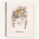 Spiral notebook with a pretty bouquet of flowers in neutral colours of brown, peach and orange. A feathered dreamcatcher adds an elegant mystical flair.