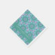 Bold bridal shower napkins with retro bohemian style floral mandala motif pattern in teal green, aqua blue, and pink violet purple.