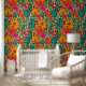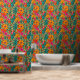Stick and peel wallpaper with a boho vibe in blue, orange and pink. Floral wallpaper to give your room a deep vibrant feeling.