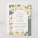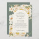 Sage green earth tone wedding invitation features watercolor floral foliage in white flowers with warm yellow,botanical leaves flower bouquet.The natural earthy tone palette makes it great for summer spring weddings, boho weddings, fall weddings, and rustic weddings.
