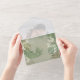 This design features a boho modern simple destination an elegant seal and sends with a modern QR code website online, scannable URL scan guest information, an elegant seal and send, trifold tri fold budget wedding, green tropical leaves leaf, botanical beach ocean coastal, with watercolor sage lime greenery foliage, elegant simple minimalist minimal, a rustic classic calligraphy script font and photo placement for lovely couple picture.