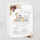 Boho floral gender neutral safari themed baby shower invitation featuring four cute watercolor safari animals and two bohemian floral arrangements in natural tones. This safari baby shower invitation is ideal for a jungle animals themed baby shower with a bohemian feel.