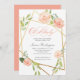 Avec une pointe de modernité et une touche d'or, c'est l'invitation parfaite à la douche pour la maman glamour. Un design géométrique est associé à des flores souples en cascade et à une police de calligraphie chic. Disponible avec "oh bébé" dans une couleur bleu poussiéreux aussi.