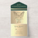 Boho Gold and Emerald Green Wedding All In One Invitation