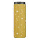 Golden boho starlight sky pattern of bright shining stars in mixed sizes on an old gold background you can change to any colour. Celestial thermal tumbler adds a happy pop of yellow ochre to Bohemian drinkware. ♡ Idyllfire