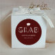 Boho graduation party favour sticker featuring typography text that says "GRAD" in a mystical typography font. The colour is in maroon.