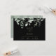 Boho Greenery Black Eucalyptus Mariage Enregistrer la carte de date. Impressionnez vos invités mariages avec cette carte de mariage à l'élégante conception et à la dernière mode, qui présente de beaux feuilles d'eucalyptus verts sur un arrière - plan noir époustouflant. Cette carte mariage à la date de péage a un beau design vert feuillage, avec des vibes rustiques et botaniques, parfait pour votre mariage de rustique, verdoyante ou eucalyptus. La disposition minimale et moderne attire l'attention sur les arrangements luxuriants et élégants de feuilles d'eucalyptus posés sur un arrière - plan noir minimaliste avec une délicate police vert foncé. Cette carte de mariage à l'état neuf donne le ton d'un cadre mariage de toute beauté, dans un décor vert argenté, noir ou vert mariage sage. Un complément parfait à toute célébration botanique ou rustique.