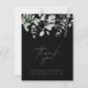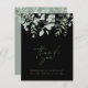 Boho Green Black Eucalyptus Carte de remerciements Mariage. Impressionnez vos invités mariages avec cette carte de remerciements mariage élégamment conçue avec de beaux feuilles d'eucalyptus verts sur un arrière - plan noir époustouflant. Ce carte de remerciements mariage est décoré dans un style verdoyant, avec des vibes rustiques et botaniques, parfaites pour votre mariage de rustique, verdoyant ou eucalyptus. La disposition minimaliste et moderne attire l'attention sur les arrangements luxuriants et élégants de feuilles d'eucalyptus posés sur un arrière - plan noir minimaliste avec une délicate police vert foncé. Ce carte de remerciements mariage donne le ton d'un bel ensemble mariage, dans un décor vert argenté, noir ou vert sage, encadré de mariage. Un complément parfait à toute célébration botanique ou rustique.
