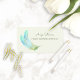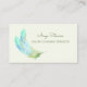 A stylish green house cleaning services business card featuring light green and aqua bohemian style feathers. Personalize by adding the name of the professional housekeeper or maid.