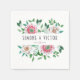 Hand painted bohemian flower napkin in green and pink and greenery. Original hand painted artwork by Caroline Bonne Müller