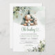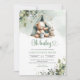 Boho greenery gender neutral teddy bear in tent invitation