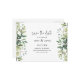 Affordable custom printed wedding Save the Date postcards with an easy to use template and fully editable fonts and colours. Add your wedding details surrounded by a pretty botanical frame of boho watercolor greenery leaves and branches. Use the design tools to edit text fonts and colours or add photos to design your own unique modern rustic wedding Save the Date postcard.