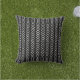 This modern outdoor throw pillow features a boho pattern of whimsical hand-drawn arrows in white on a black background.