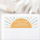 Boho Sunshine Here Comes the Son baby shower in blue and yellow return address label.