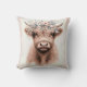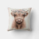 Boho Highland Cow With Floral Crown Throw Pillow