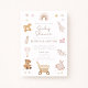Cette invitation au baby shower boho est le choix idéal pour les parents qui aiment les tons doux et naturels et une esthétique chaleureuse et confortable. Avec des illustrations délicates d'un ours en peluche, lapin, chariot bébé, ballon et jouets en bois, cet invitation apporte un charme doux et artisanal à votre célébration. La palette de couleurs pastel neutre - beige, blush et marron - la rend idéale pour tout genre. Parfait pour les baby showers rustiques, minimalistes ou modernes, cette invitation ajoute une touche de style et de coeur à votre journée spéciale. Faites de votre baby shower un souvenir inoubliable grâce à cette adorable conception de saumons !