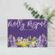 Rustic and boho RSVP card with large hand written style calligraphy in white on a purple background. Also featuring stunning Lemons and lavender painted in watercolor. Original artwork from the studio created for your special day. Fully editable text so you can easily remove or change/add words to suit your wedding plans.