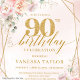Boho Light Pink Gold Floral 90th Birthday Invites