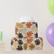 A seamless pattern featuring abstract, organic coral and leaf-like shapes in varying sizes. The design uses a warm, autumnal palette of terracotta, deep chocolate brown, burnt orange, and cream. The silhouettes have a soft, hand-cut paper texture that gives the pattern a mid-century modern feel.