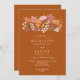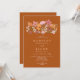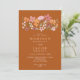 Announce your upcoming wedding with our boho-inspired invitations, featuring pretty and charming wildflowers in trendy earthy tones like orange, sage green, dark red, and dusty pink on dark terracotta. The modern brush script adds a touch of elegance to these unique invitations that are perfect for any boho meadow or woodland-themed celebration., perfect for outdoors and garden wedding ceremony. Add your initial in a flourish frame.