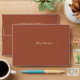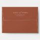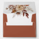 Elegant minimalist typography script bride and groom names return address personalized wedding envelope in simple terracotta brown fall colour with autumn watercolor floral botanical liner.