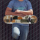 This skateboard deck features a blend of earthy hues and abstract shapes with a leaf motif, creating a stylish boho minimalist look. Perfect for skaters drawn to nature-inspired aesthetics, this unisex design brings modern simplicity and organic beauty to every ride.