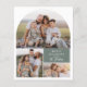 Make your Christmas cards stand out with this minimal boho design, featuring an arch-shaped photo collage with three of your favourite photos and a custom greeting. A sage green panel highlights your family name in elegant handwritten script calligraphy. The back features a fourth landscape photo with space for a personal message, perfect for a yearly recap or heartfelt holiday wishes to friends and family. Personalize these cards with family portraits, couple photos, or a favourite pet picture. As part of Zazzle's budget selection, this sheet doesn't come in standard card sizes. To get this design on a standard card, you can find it in the collection or use the Zazzle Make Machine to transfer it onto your preferred product. View the collection linked on this page for coordinating items or browse our store for more budget Christmas photo cards.
