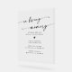 Ce mariage acrylique clair et moderne en signe de mémoire aimante est parfait pour un mariage minimaliste. Le design bohème moderne présente une calligraphie rustique simple avec un style unique mais classique. Parfait pour toute saison : printemps, été, automne ou hiver. Personnalisez votre signe commémoratif mariage avec le nom de vos proches disparus.