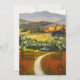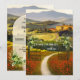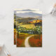 A modern romantic wedding invitation inspired by Italian landscape scenes. A mixed technique fine art painting in festive colours. On the back is a soft overlay to enable your text visibility, framed by watercolor leaves and flowers. Perfect for an Italy themed wedding celebration.