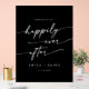 Ce boho moderne et heureux blanc mariage noir accueil acrylique signe est parfait pour un mariage minimaliste. Le design bohème moderne présente une calligraphie rustique simple avec un style unique mais classique. Parfait pour toute saison : printemps, été, automne ou hiver. La citation sur votre signe de mariage d'accueil dit "bienvenue à notre bonheur toujours après". Customisez-le avec le nom du couple et la date.