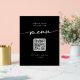 Ce boho moderne code QR noir menu mariage panneau acrylique est parfait pour un mariage minimaliste. Le design bohème moderne présente une calligraphie rustique simple avec un style unique mais classique. Parfait pour toute saison : printemps, été, automne ou hiver. Entrez votre adresse Web dans la section de code QR du modèle et le code QR sera automatiquement mis à jour et lié à votre site. Personnalisez le panneau avec vos noms et la date du mariage.