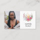 Boho Moon Crystals Feathers pink Flowers photo business card with white background.