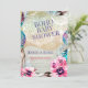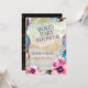 Beautiful modern boho baby shower invitation designs: This earthy, hippie, boho style invitation is made with a mix of watercolor flowers and feathers, splashs of gold glitter, together with ethnic bohemian crescent moon design. Similar to a the Turkish lights seen at bazaars in Istanbul.