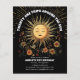Make your teenager's 21st birthday an unforgettable celebration with our enchanting boho mystical sun birthday invitation! This beautifully designed invitation features a vibrant watercolor illustration of a brilliant boho sun surrounded by an array of blooming flowers, creating a cheerful and inviting atmosphere. At the centre, the whimsical phrase "Twenty One Trips Around the Sun" is elegantly showcased against a rich black background, ensuring it catches the eye of your guests.